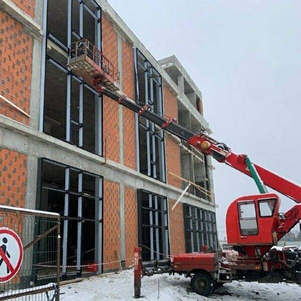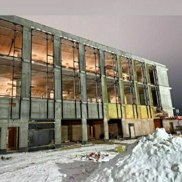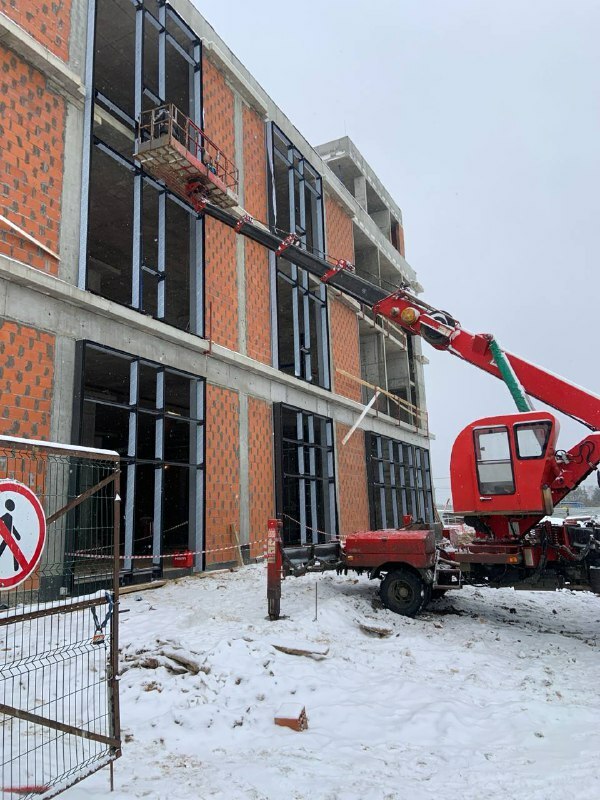 Начали работы по установке алюминиевых витражей «Общественного здание с функциями делового управления, общественного питания и магазинами