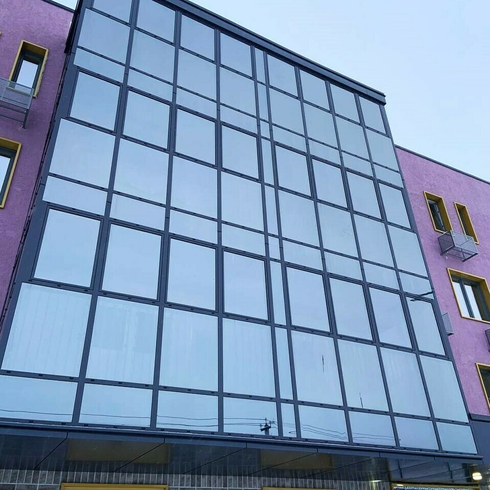 Витражи, окна и входные группы выполнены в профильной системе ALUTECH W72, ALUTECH F50, ALUTECH W62, C43.