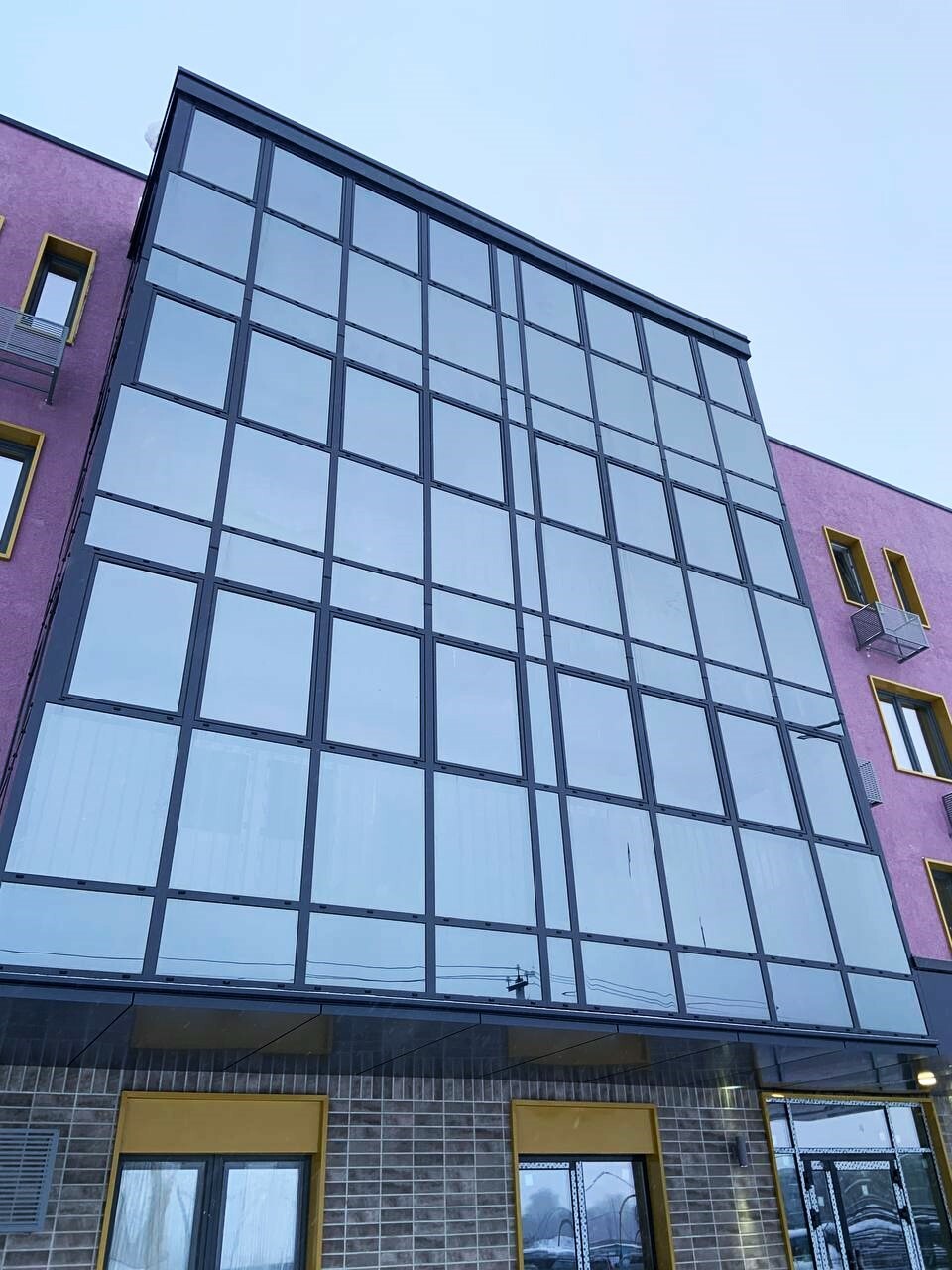 Витражи, окна и входные группы выполнены в профильной системе Татпроф